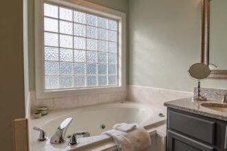 His bathroom can be seen clean, but behind…