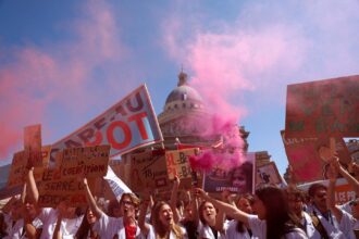 Des étudians and Médecine et des Médecins manifest…